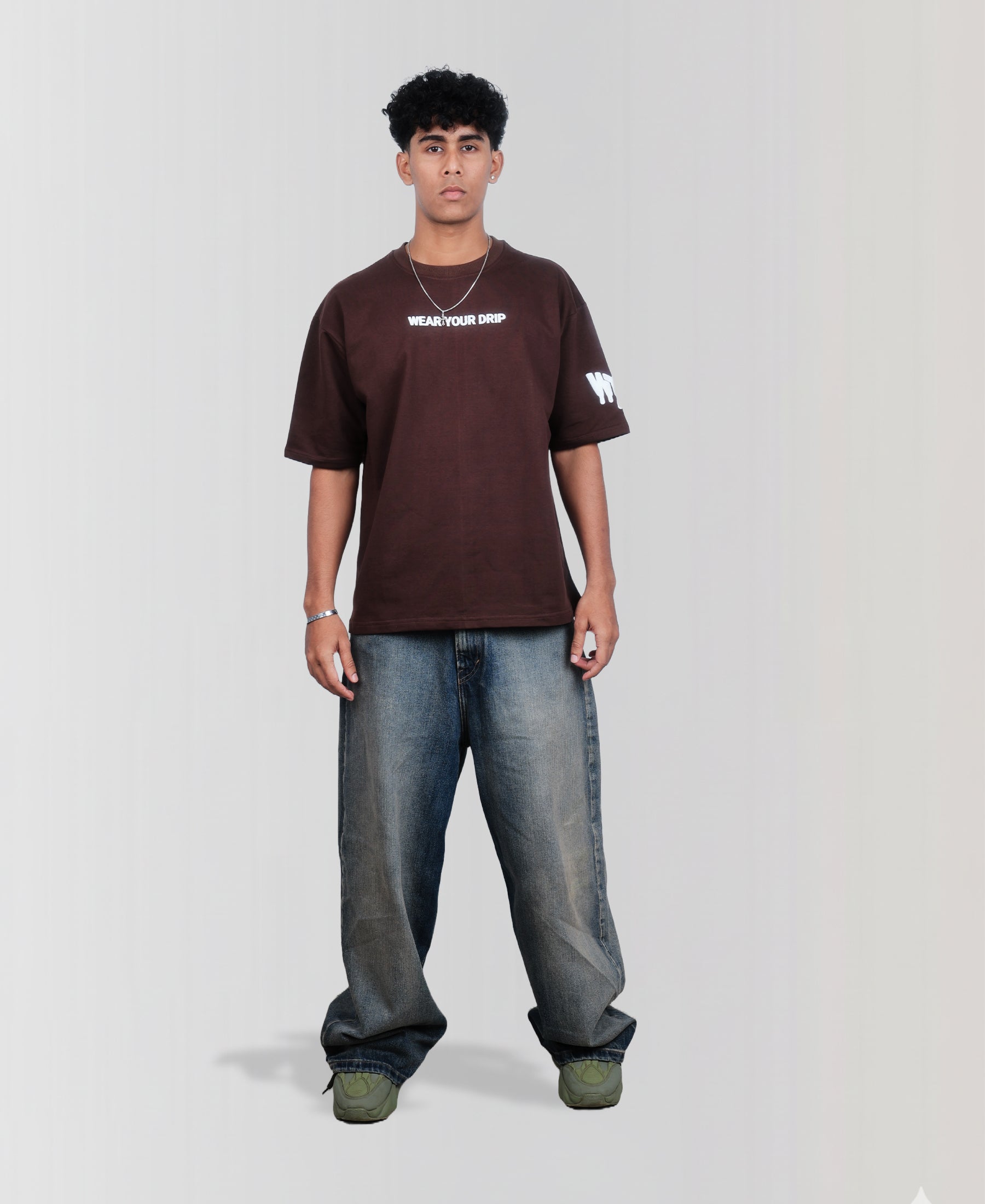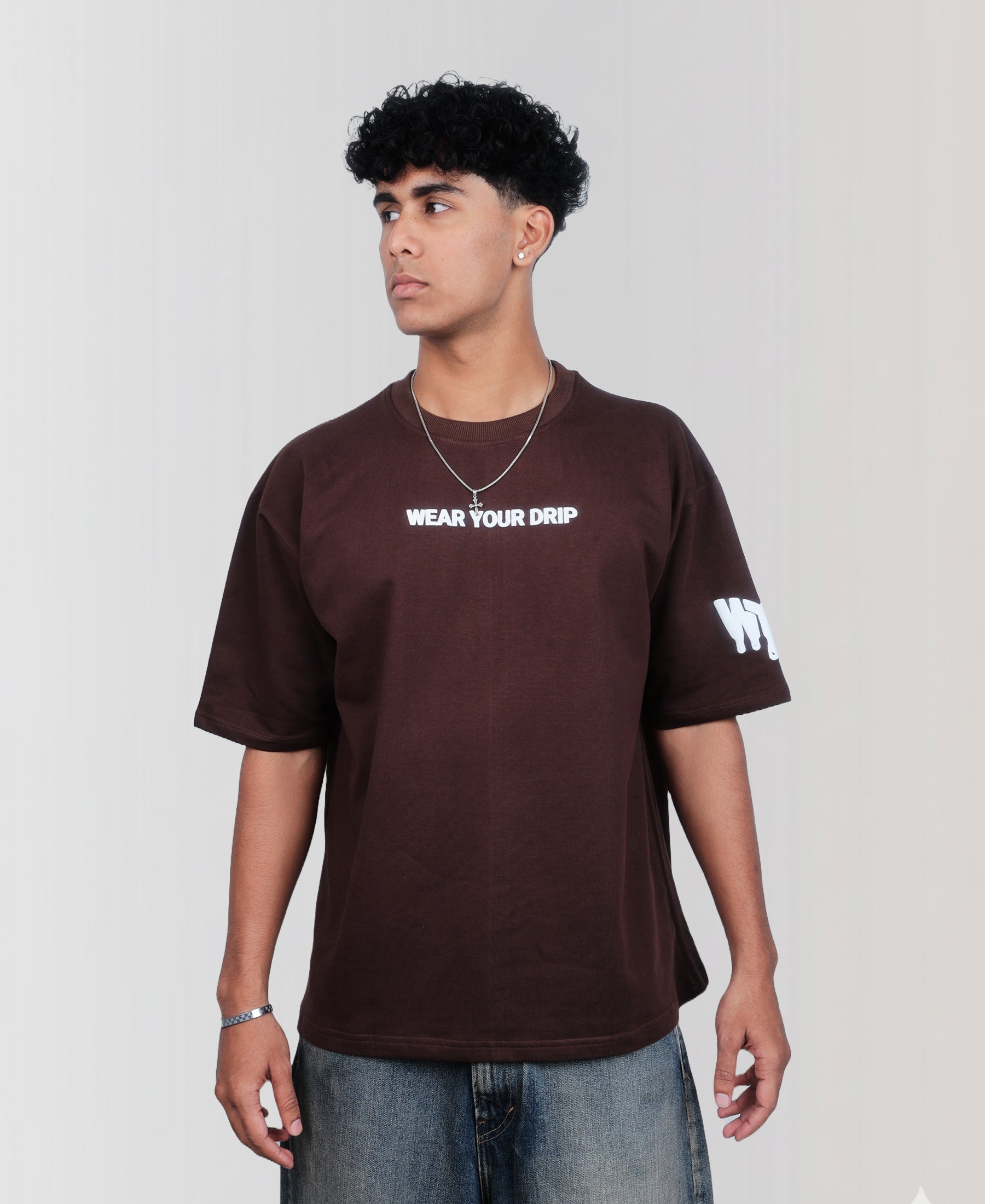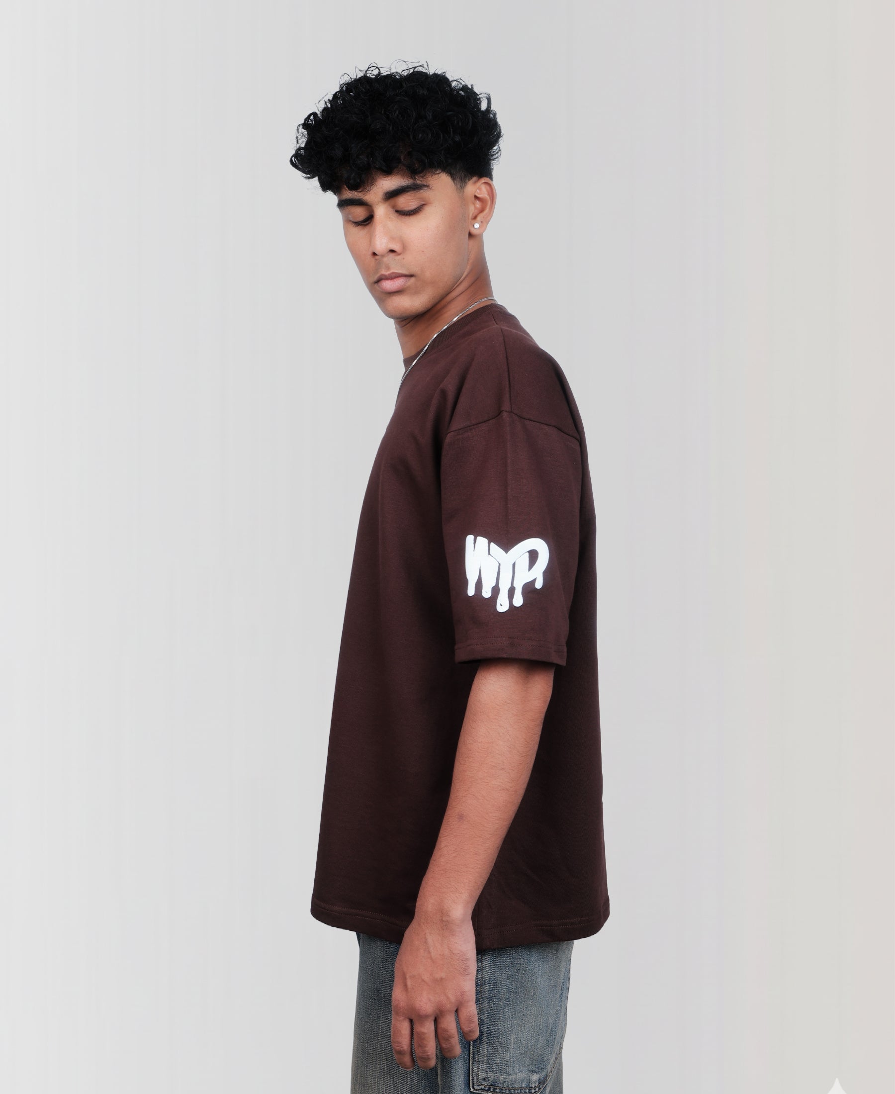 This brown oversized T-shirt radiates positivity with its bold back graphic print. The design features the uplifting phrase “Better Days Ahead” in large retro-style white typography, accented by playful icons of clouds, a rainbow, and a rising sun. The cheerful artwork brings a motivational and street-casual vibe, making it perfect for everyday wear.